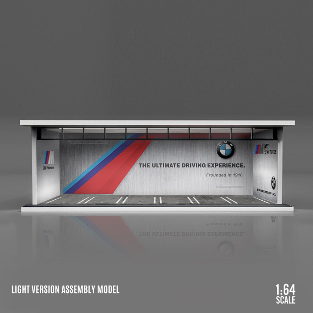 The 1:64 scale Diorama of BMW garage is meticulously crafted model that replicates a typical service garage, offering enthusiasts a detailed and immersive display piece. This diorama measures approximately 300 cm in length, 133 cm in width, and 100 cm in height, constructed from a combination of ABS plastic, acrylic, and MDF board, ensuring durability and a high-quality finish.